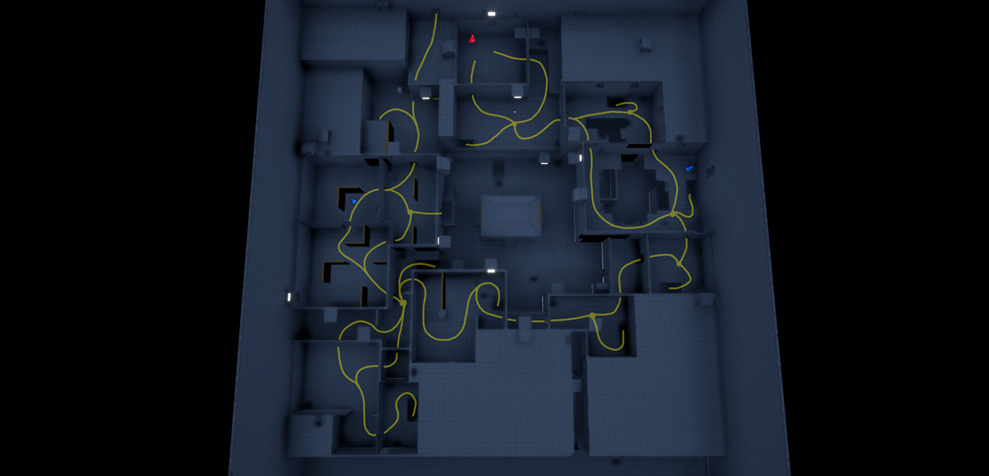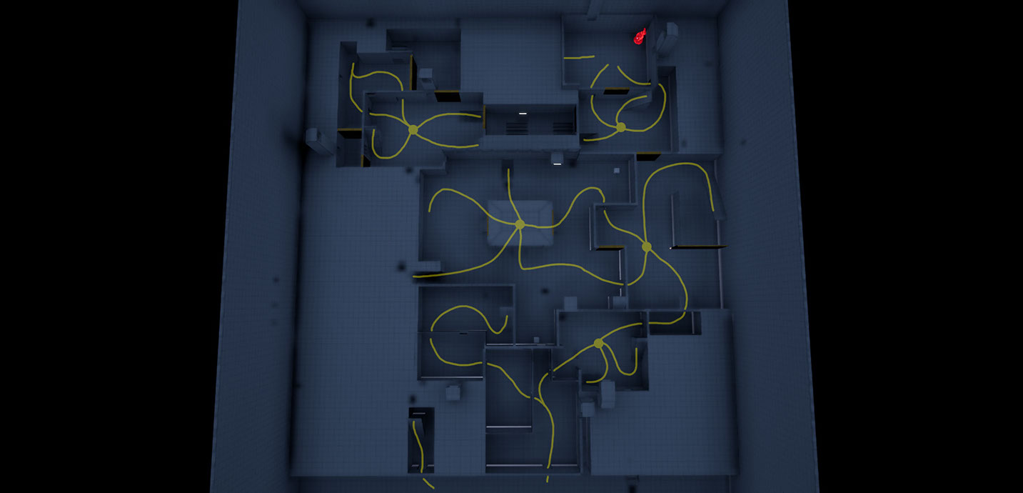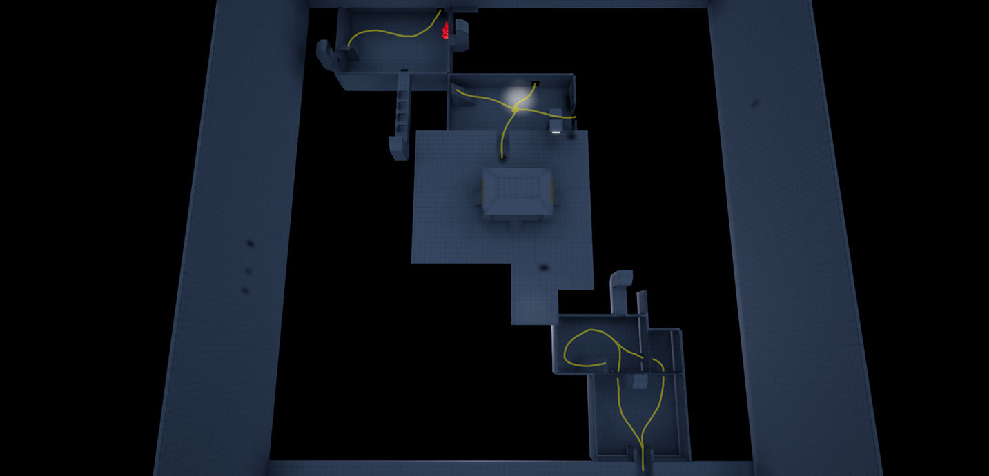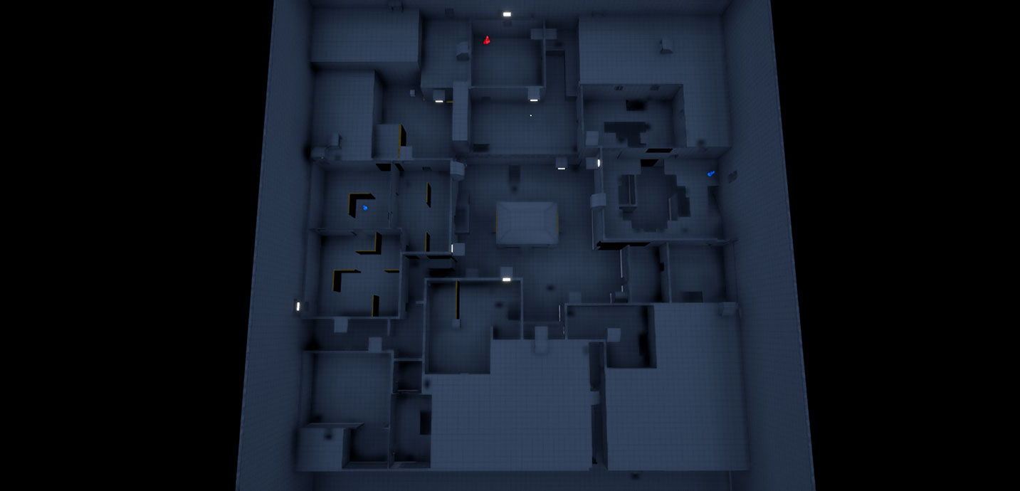 After working on several iterations with a different mindset, I decided to focus on a nonlinear level more adapted for a classic multiplayer game. That resolved a lot of problematics that we had at the same time.
