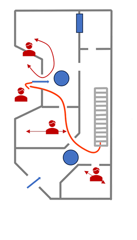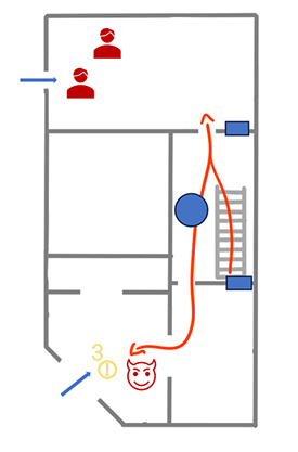As for the windows, I kept them at 1 meter high because it fits with the jumps and provides enough cover from the guards.