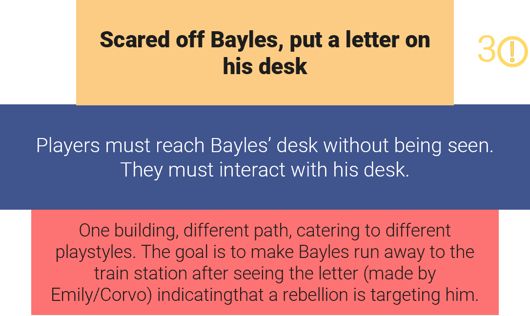 As my objective was to understand and apply the design values of the immersive sim, I had to give a proper definition of it. For me, the principle of this genre is to provide the player with different options, a variety of actions, and information about various objectives to help them make conscious choices.