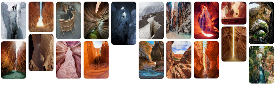The next idea was to create something more close quarter and claustrophobic to accentuate the mysterious mood of the place and give the players the chance to experiment their wallrun ability. I had to think about different environments and rock structures that shape the spaces as you can see on my references below. It allowed me to create different kind of shapes for multiple gameplay phases, such as the quarry rock blocks that are used for the covers in the combat space.